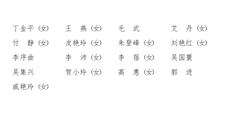 (共17名,按姓氏笔画排列)